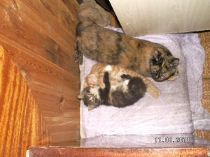 Ласковая, умная, спокойная, добрая, «черепахового» окраса кошечка Муся, любит «поговорить» и её дочка очень пушистая, умненькая с необычным окрасом — отдам в добрые руки.