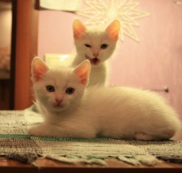 1й белый спокойный, тихий, самый крупный из тройки, несколько застенчив.