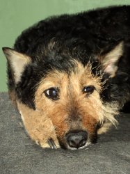 пропала собака в филях 31.12.2014 год спина черная кудрявая лапы и живот рыжие с белым. хвост купирован. ушки стоят. грудка рыжеватая. мордочка острая. рост немного ниже колена. очень добрая идет к людям не кусается любит кошек. хромает на задние лапы. при пропаже была без ошейника. кличка КРЫСЯ возраст 7 лет. вознаграждение нашедшему обязательно