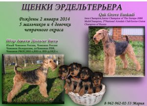 International Champion, Junior Champion of The Europe-2008, Hungary, Russia, Moldova, Estonia, 2*National Airedale Club, Terrier-Union;Champion of Russia, Belarus, Czech, Estonia, Latvia, Litva, Ukraine, Moldova, RKF