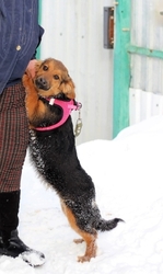 Иветта — трогательная и душевная, безумно тянется к людям, а уж если на неё обратили внимание, то сразу просится на ручки и прижавшись к плечу, заглядывает в глаза, как будто умоляет, — забрать её с приюта. Она постоянно выглядывает в окошко вольера и ждёт, чтобы на неё обратили внимание. В приюте ей тяжело, она маленькая, а маленьких часто обижают. Иветта очень ласковая и дружелюбная собачка. Возраст 6 месяцев, здорова, привита, вырастет совсем не большого размера., приучена к выгулу.