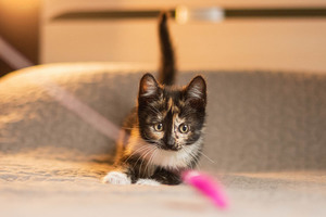 Трехцветная (химера) девочка Габи. Габи прелестница. Веселая, позитивная, игривая малышка. Смотреть за ее играми — огромное удовольствие. Иногда закрадываются сомнения, точно ли у Габи нет встроенного моторчика, так стремительно она носится.
