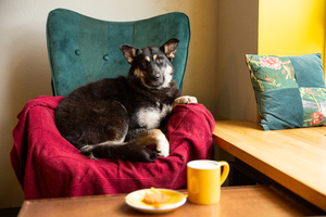 Отлично остаётся дома одна, ездит в машине. Ест сухой корм.