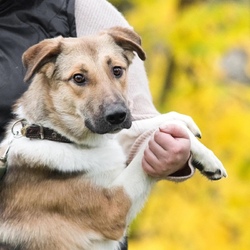 Ему многое пришлось пережить! Был еще щенком выброшен в лес. Его спасли волонтеры, попал на черную передержку, где его не кормили, издевались, но он не потерял веру в людей!