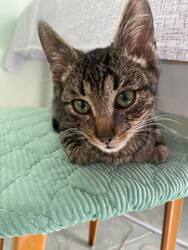 Котенка зовут забавной кличкой Чипс, мальчик, примерно 4-5 месяцев. Подобрала его на стройке, как оказался на улице — неизвестно.