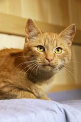 Страйк. Медовый котик с янтарными глазами и очаровательным полосатым хвостом. Очень любит ласку – просто невероятный мур-генератор, настоящий тигр. Нежный, но при этом активный и игривый, он наполнит дом своей огненной энергией и точно станет самым лучшим другом! Возраст – 5-6 месяцев, сейчас идет активная смена клыков.