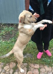 Метис лабрадора. Мать — лабрадор, отец — неизвестен.