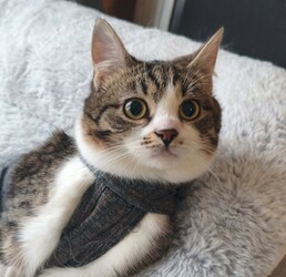 Машенька ещё подросточек — ей всего 6-7 месяцев, она стерилизована, проглистогонена и от паразитов обработана. Все дела только в лоточек (древесный наполнитель).
