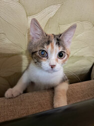 Трехцветке примерно 3,5-4 мес. У Ириски обычная история выживания: жила с мамой на улице в частном секторе, обычные брошенки ((. Котенок пролечен от уличных инфекций, лоток освоен на 5+, обработан от паразитов, готовится к вакцинации. Внимание! У Ириски осталось бельмо на глазу, возможно, со временем оно пройдет, но может быть так и останется. В идеале, нужна повторная консультация офтальмолога. Также, очень маловероятно, но возможно, что состояние глазика будет ухудшаться. Поэтому, если для Вас это большая проблема, то не тратьте ни свое, ни мое время:)
