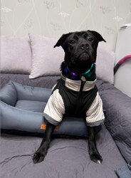 Хорошо ведет себя в квартире, гуляет на поводке, готов обучаться командам.