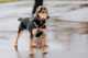 На прогулке ведёт себя сперва очень активно и игриво, потом успокаивается.