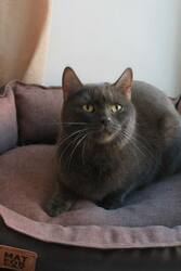 Мальвине около 1,5 лет. Нежная и очень социальная кошечка красивого окраса серый дым.