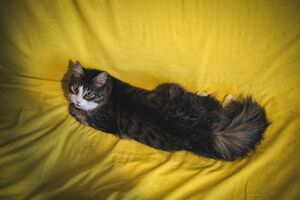 По характеру спокойный, очень ласковый, дружелюбный и доверчивый котик.