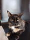 Миниатюрная черепаховая кошечка выглядит, как подросток, однако Мурка взрослая, ей примерно 7 лет.
