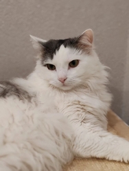 Белый пушистый сибирский кот