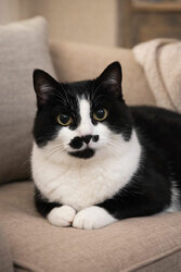 Посмотрите на мою яркую чёрно-белую шубку, симпатичную мордочку. Надеюсь, я вам понравлюсь. Обещаю быть другом и компаньоном.